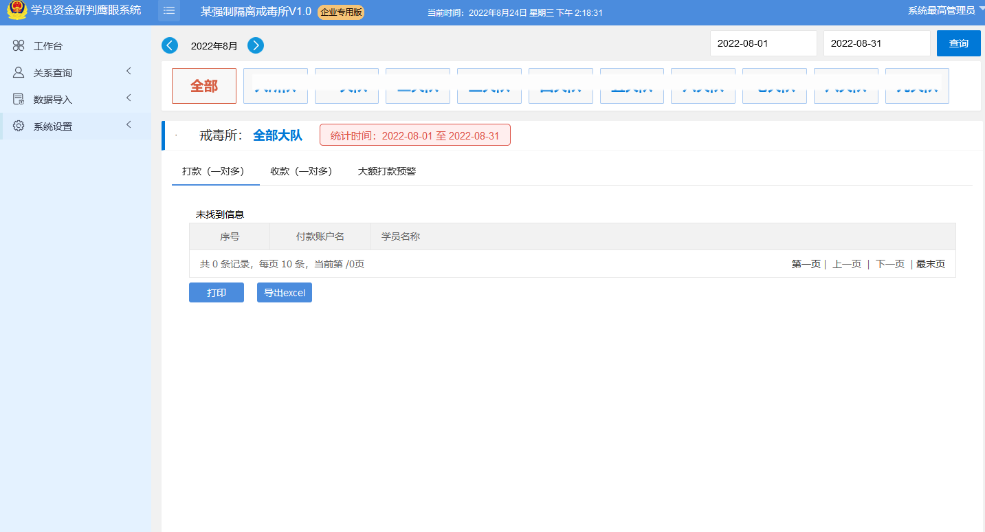 “鹰眼”系统拥有数据侦查智能分析研判模块,从所内在押学员银行资金流水出发,在现有数据的基础上进行私有云改造,融合资金关系、通联关系等多维度数据,依托“鹰眼”数据模型系统的算力和数据服务,充分发挥数据融合分析的重要作用,强化研判数据的科技力量。